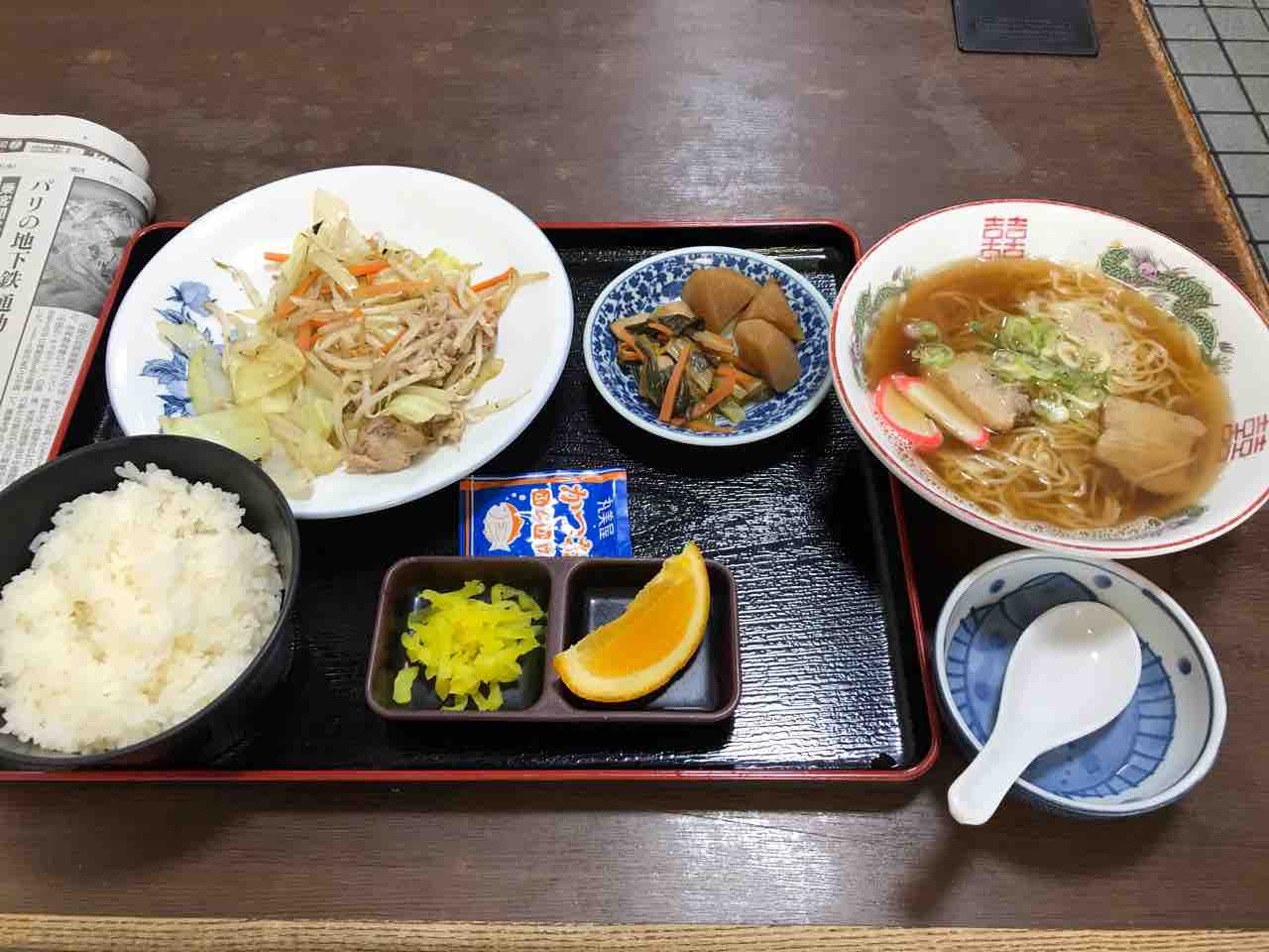 ラーメン+ライス小+野菜煮付小+つけもの@徳田屋201902