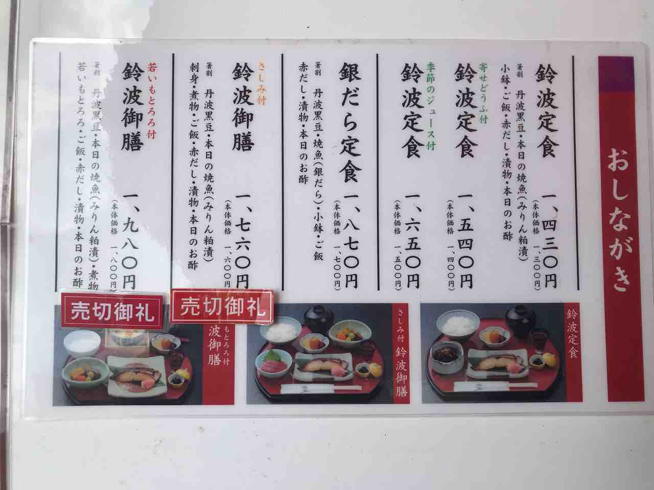 この日はまだ限定営業。レポートがアップされた頃はさしみ付き鈴波御膳もあるはずです。