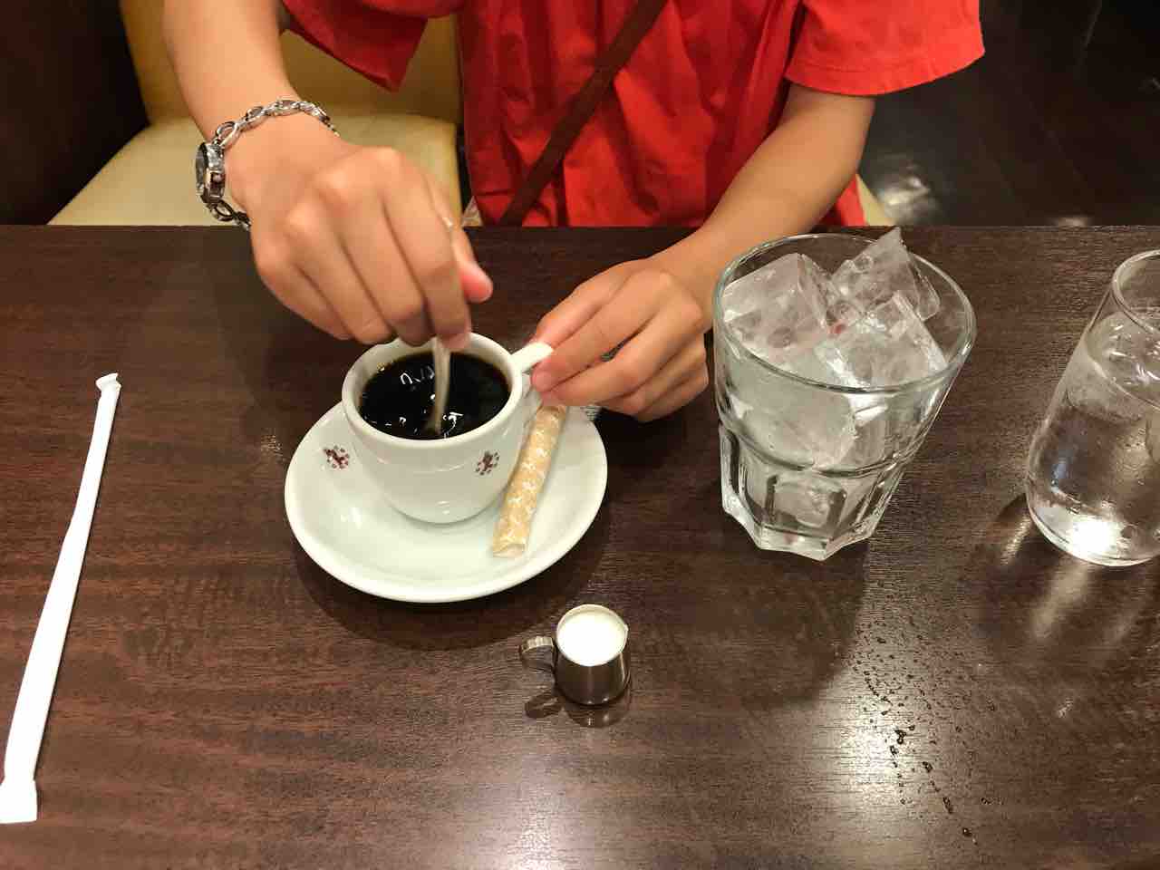 まずお好みの砂糖をデミタスカップのコーヒーに入れます。