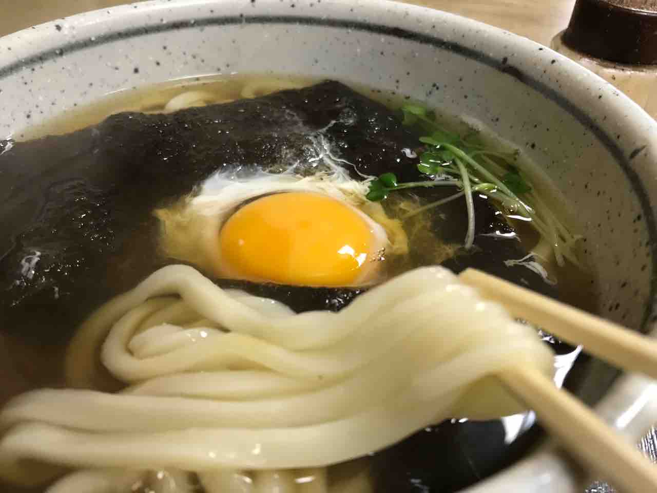 名古屋の種物松月ってえのは、白汁のうどんに板海苔を載せ、その上に生卵を落とすって奴なんですな。