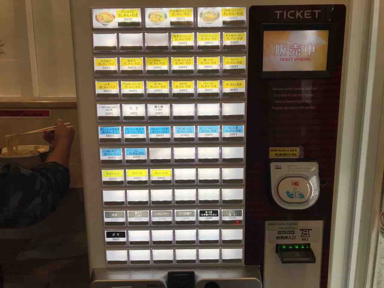 さてなんにしましょうか?っと食券機の前に立つと、お姉さんがわざわざカウンターから出てきて、「店内が混みあってますし、お子さんがいるので、しばらくお待ちください。」っと入店制限をかけられてしまいました。