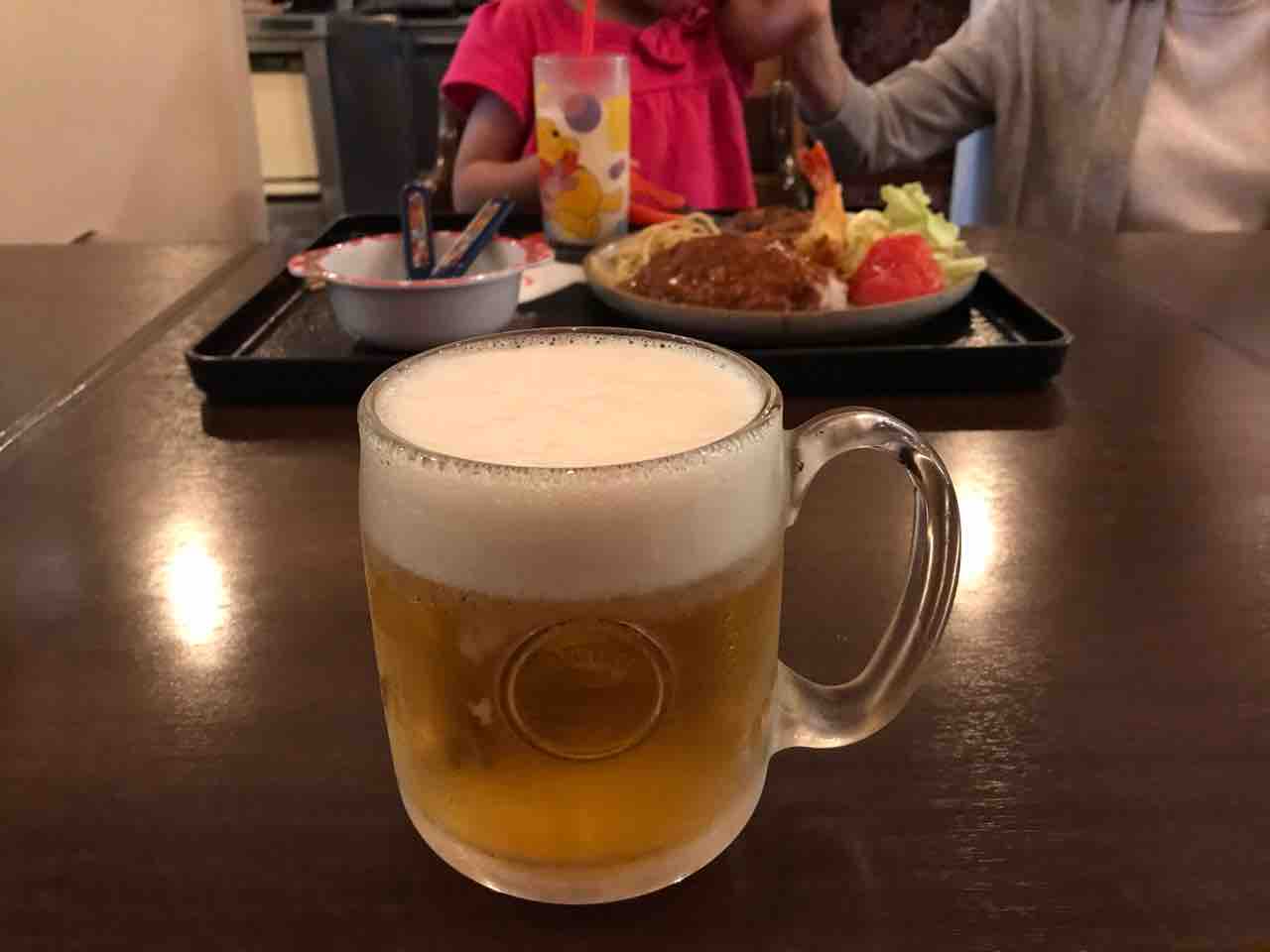 アタクシは子供のプレートを狙いつつビールをお願いする。