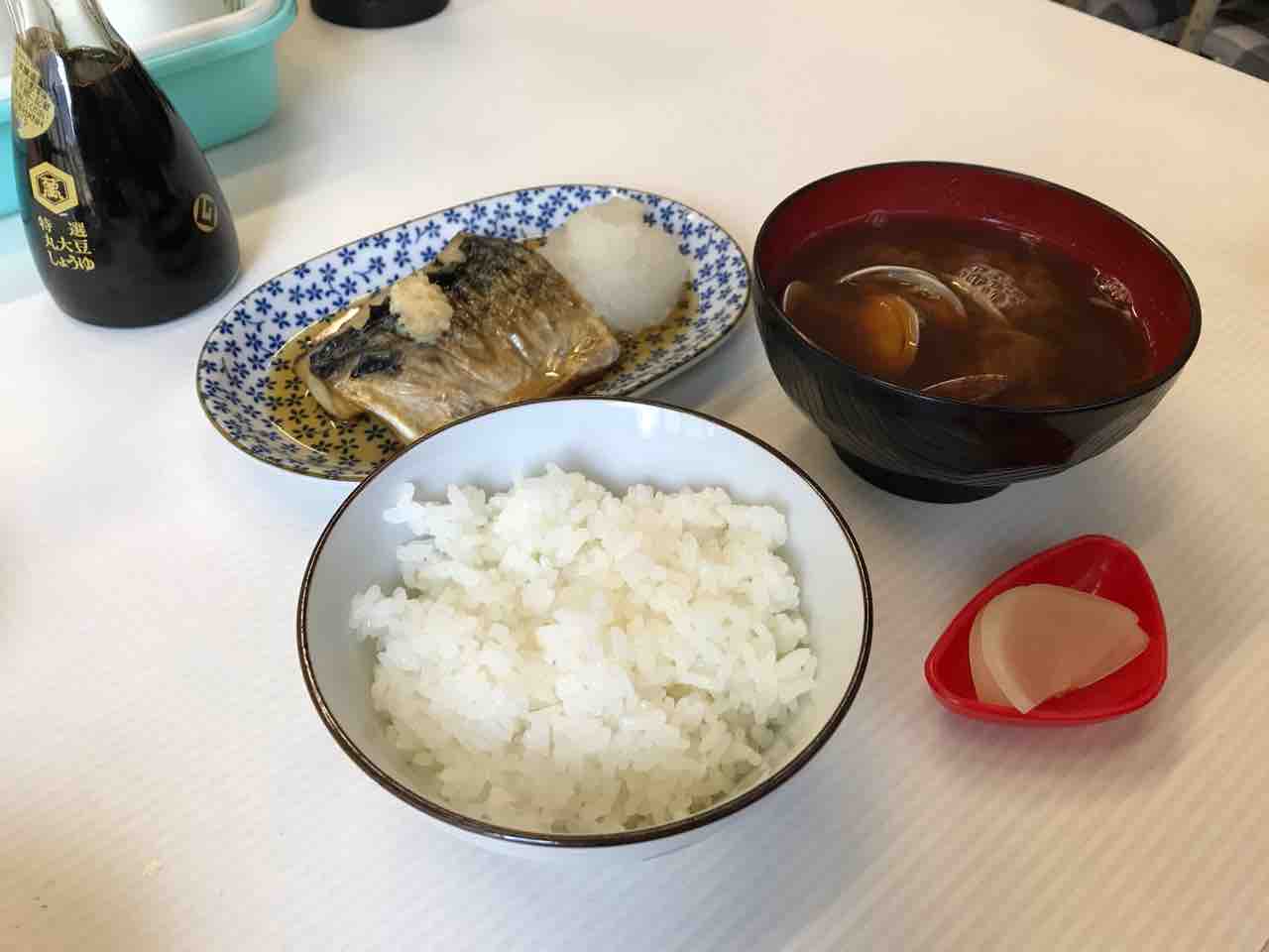 秋刀魚の塩焼き、厚揚げ煮、糸コン煮@魚源食堂