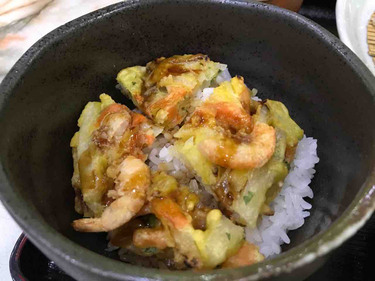 正直白飯が出てきたら何で平らげようと思っていたらかき揚げ丼。