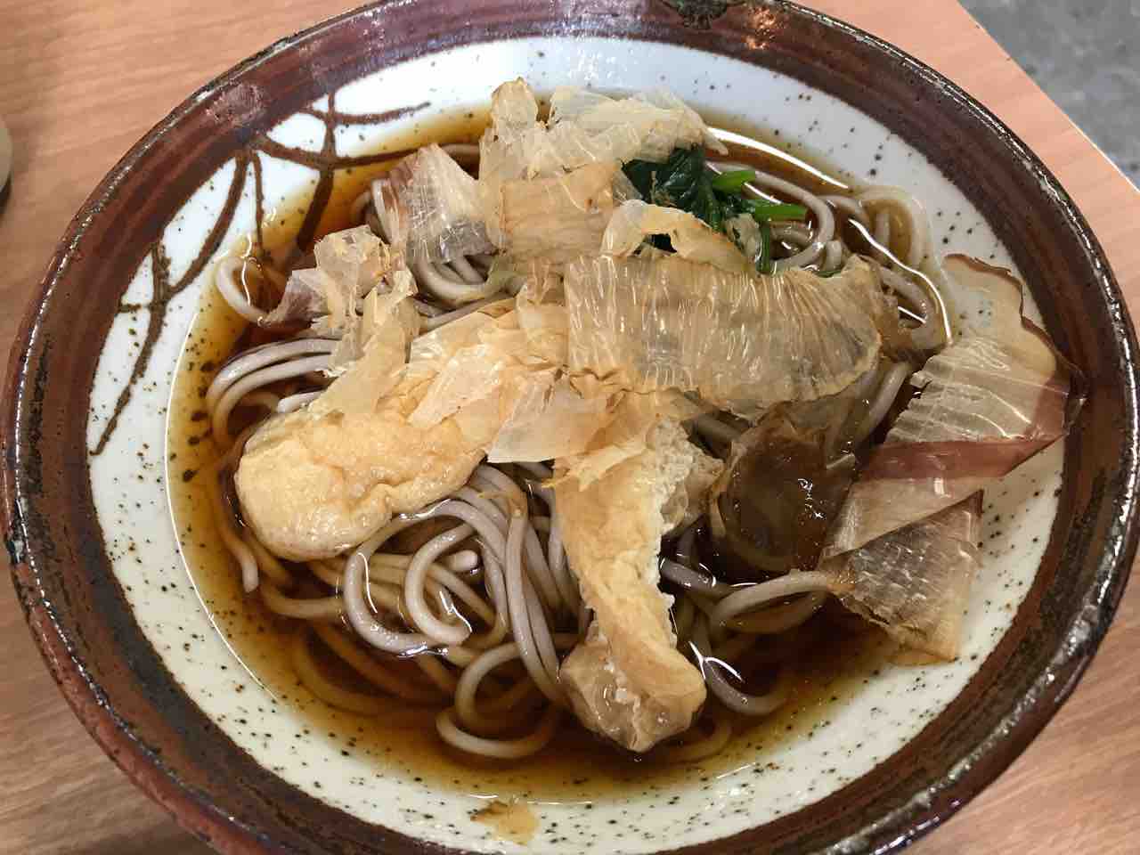 冷たいそばに冷たい汁。優しい味わいの油揚げにほうれん草に花かつお。
