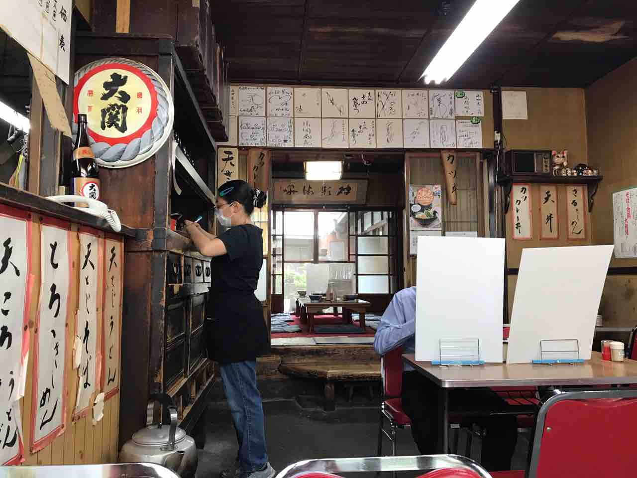 久しぶりに外観を眺めると、看板にはカツ丼、天丼、うどん、ざるそばとあるんですね。