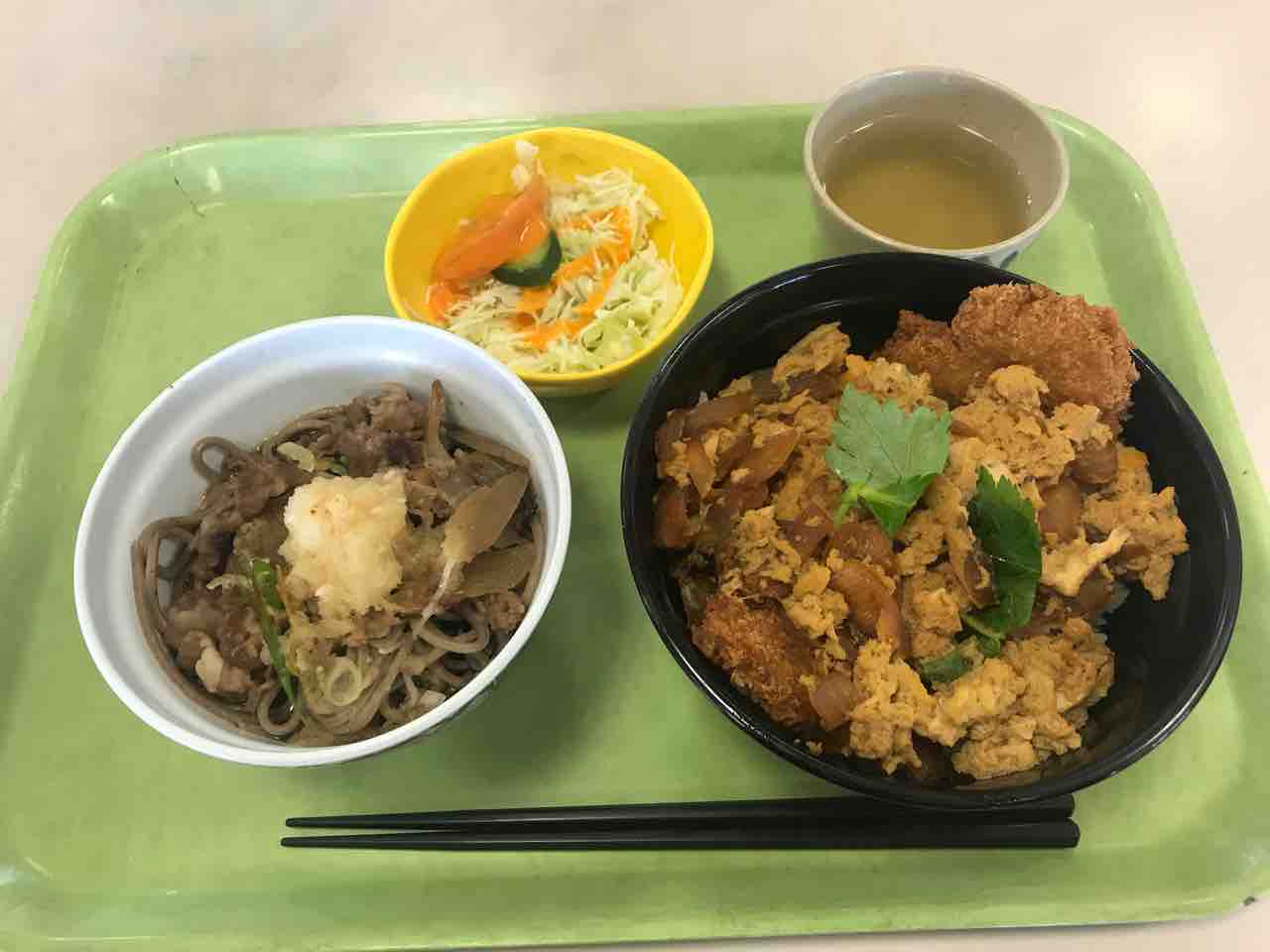 食券をカウンターに置くと、「はい!」っとかつ丼のみならず、蕎麦まで置かれるファストフード。