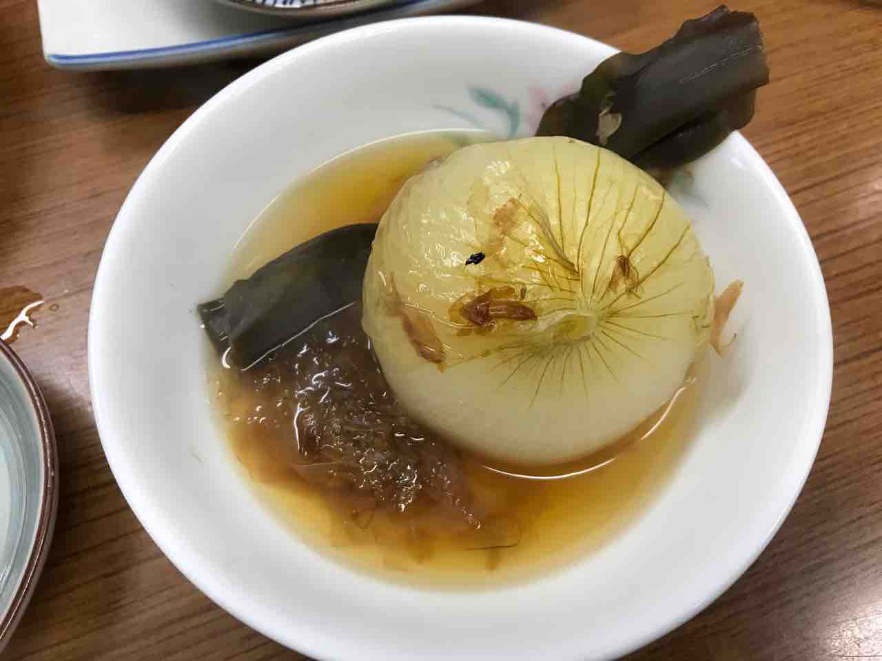 新玉葱の煮込みだそうだ。かつおだしの新玉ってのは初めて頂きましたが、旨いですな。