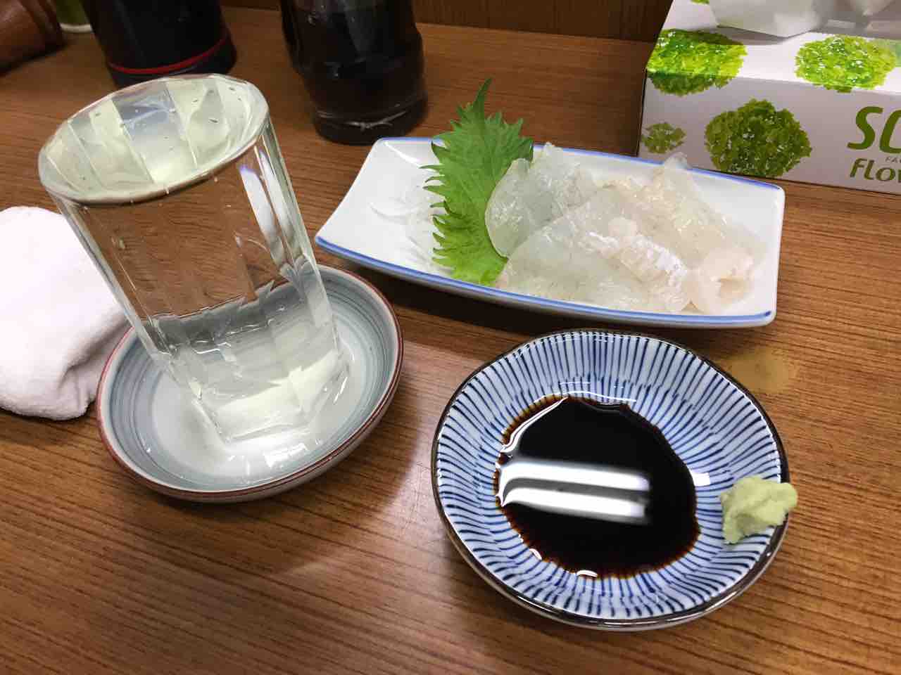 鰹刺、鳥貝、鰤頭肉、蛍烏賊沖漬け@魚源食堂