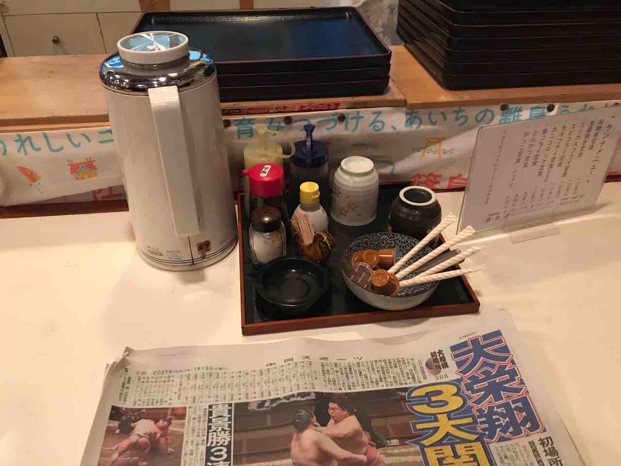 スポーツ新聞をかっさらい着席すると、お姉さんから「今日はたこめしがお得だよ!」っと声をかけられ。「たこめしください。」とお答えする。