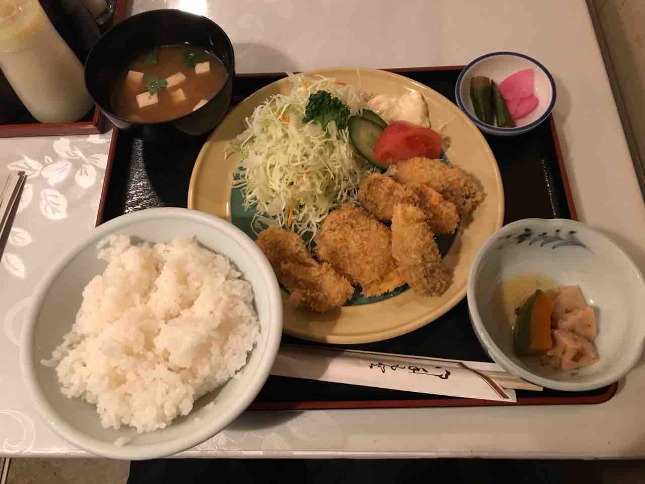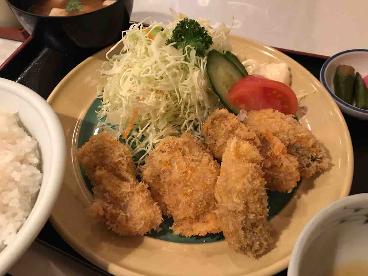 ガラガラの店内だからこそ味わえる競争率の激しいカキフライ定食。