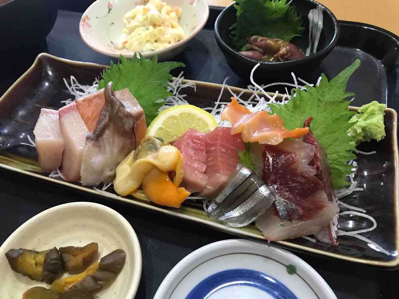 刺身定食、メバル煮定食、白子ポン酢@いちます