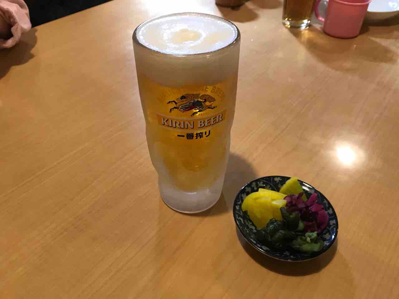 後述しますが、こちらサラダバーがあるのでおつまみは漬物3種盛りとなりました。