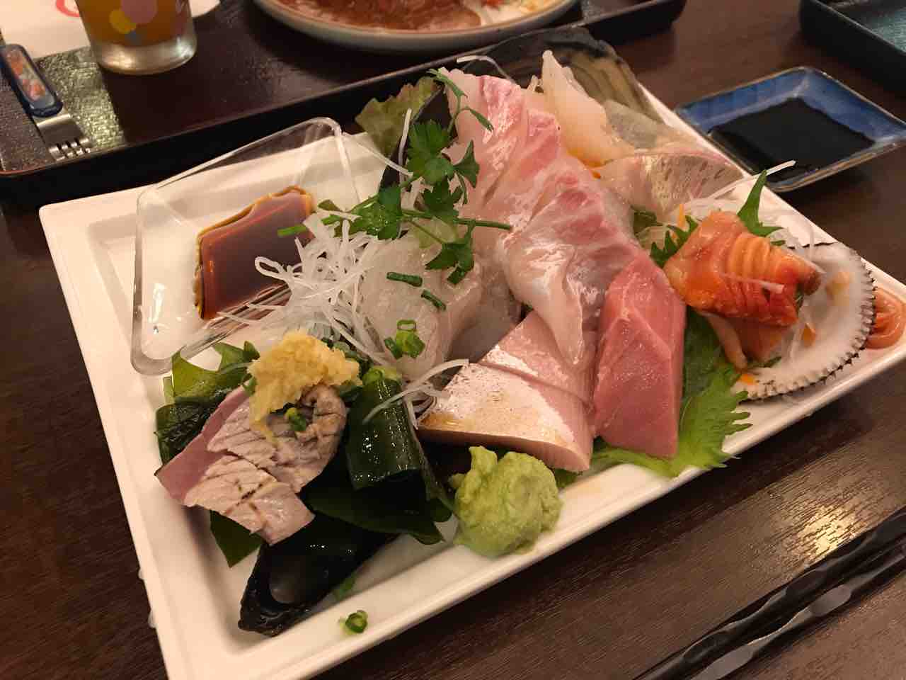 鰹に平貝に夏を感じさせる刺し盛りですな。