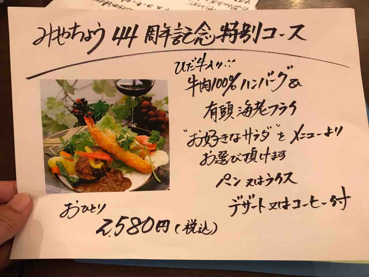 お子様の多い我が家はお子様ランチが味わえますが、今しかいただけないみやちょう44周年記念大人様ランチも味合わなきゃいけないなと思う次第であります。