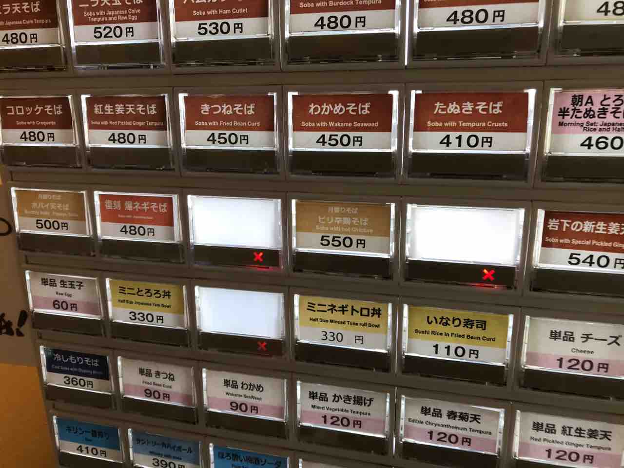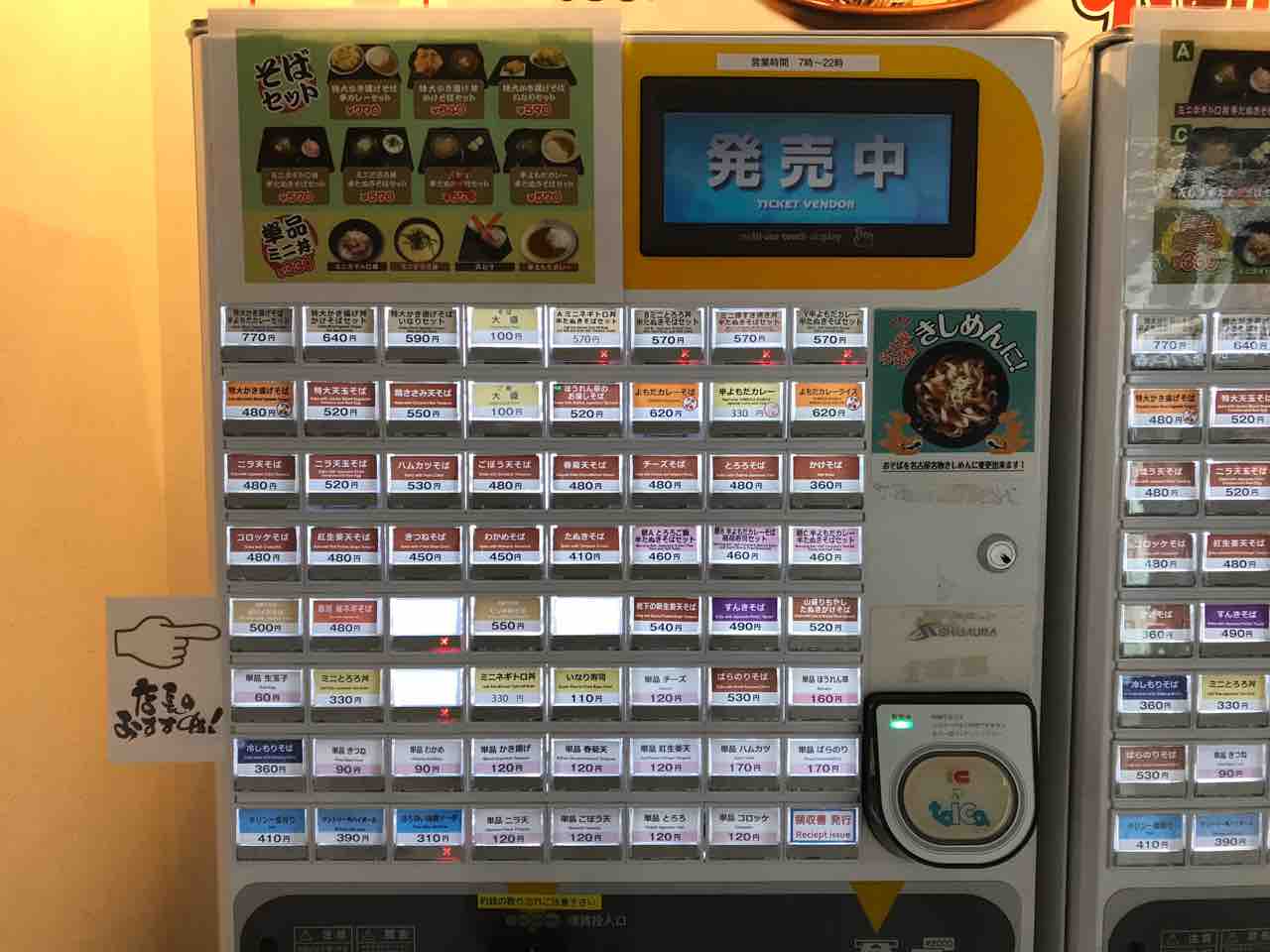 「冷やしもできます。」の注意書きを見つけたぬきそばのボタンを勢いよく押します。