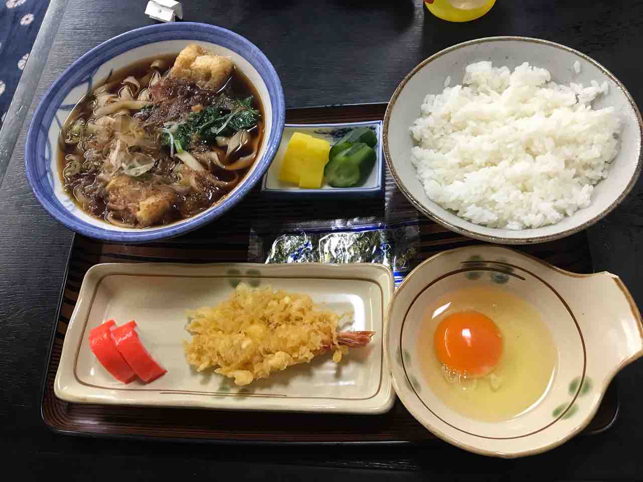 どんぶり飯に生卵、味海苔に漬物がついて、もう何も言うことはございません。