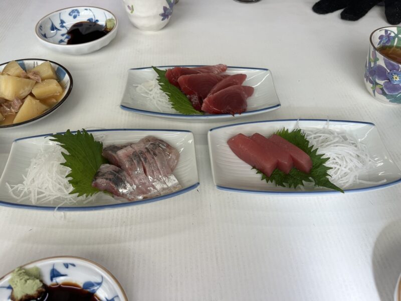そんな訳で鰹・鯵・鮪の豪華お刺身三点セット。