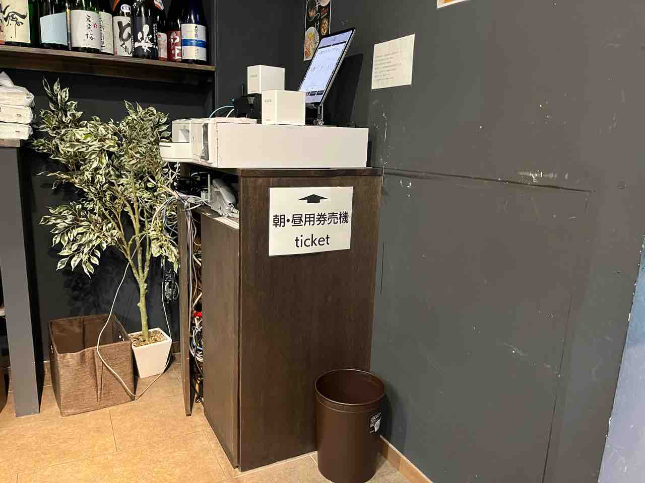 朝昼はこちらの食券機で食券を購入後、カウンターに食券を並べます。