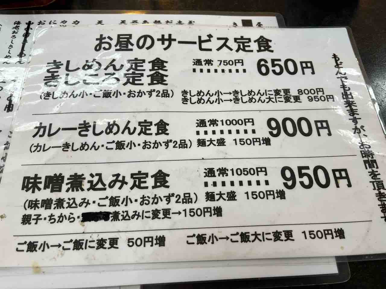 2年前の記事では「きしめん定食を食べよう。」っとありますので、初心貫徹!?きしめん定食をお願いします。