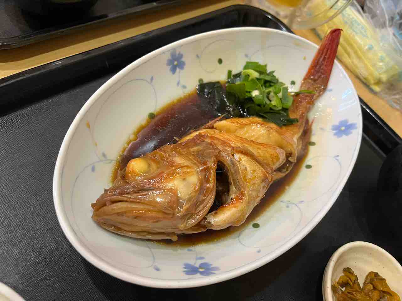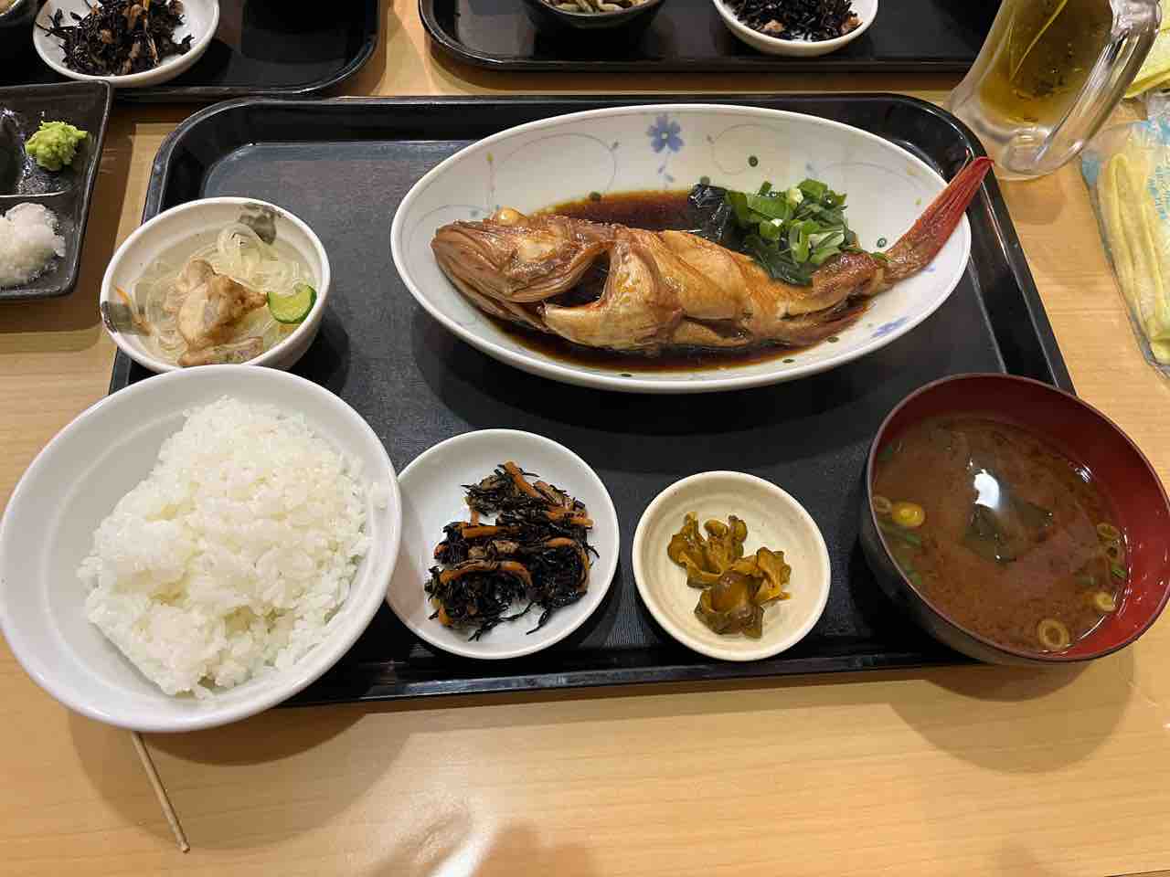 真ん中が所望するキンキ煮付け定食。小鉢が変わるってのが待た嬉しい。