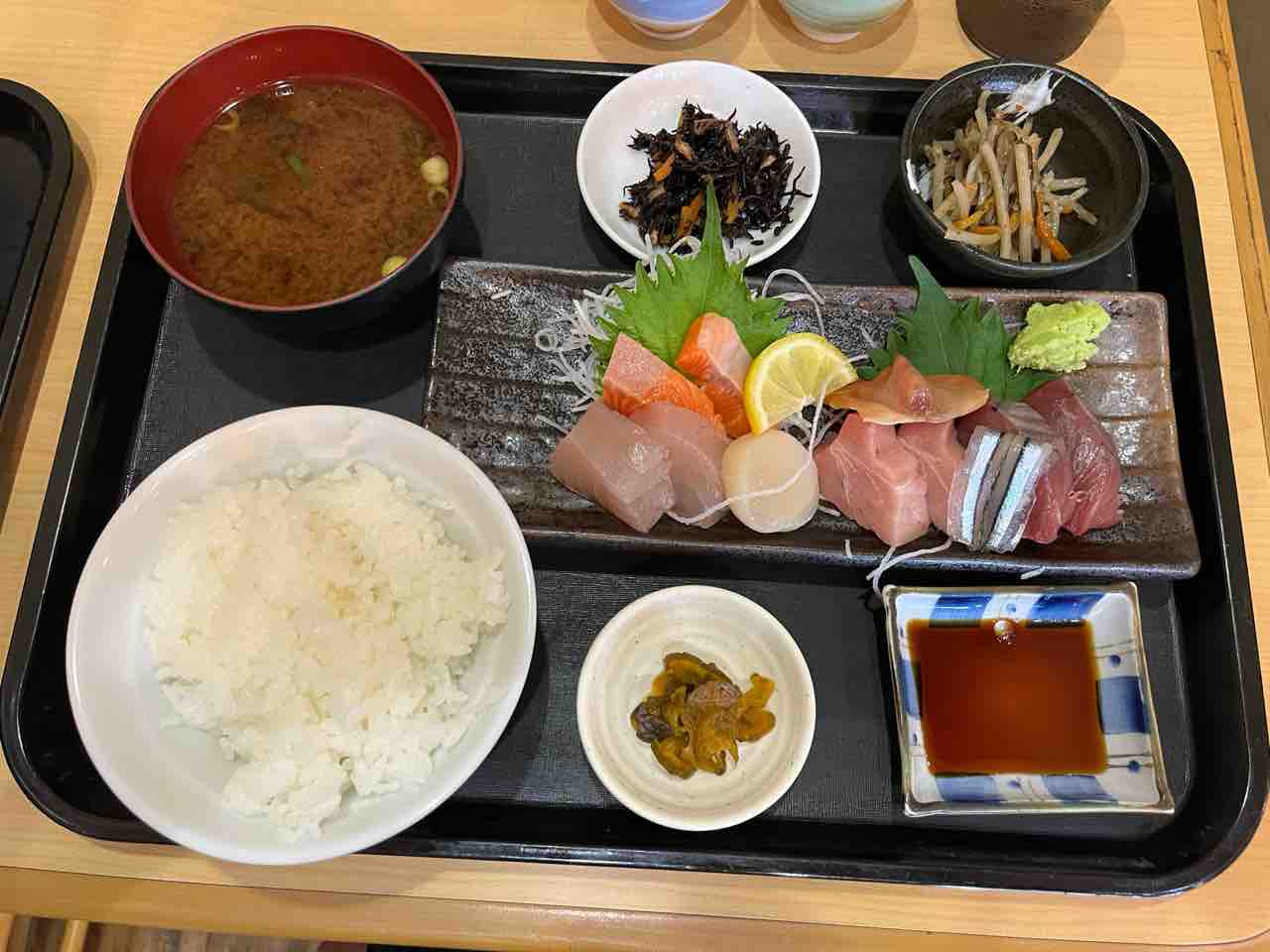 あいのり刺身定食、イサキ塩焼定食@いちます201904