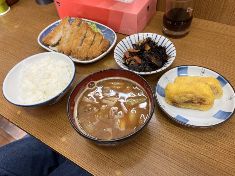 大姉ちゃんは朝からとんかつ!お惣菜にごはんに味噌汁で、完璧な朝ご飯。