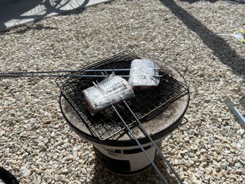 この日は子供に太刀魚を捌かせて、七輪で焼いてみました。
