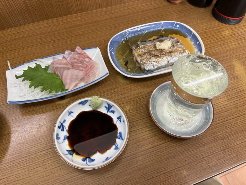 市場で石鯛刺、太刀魚焼、とんかつ、出汁巻、ひじき@魚源食堂(柳橋中央市場、愛知県名古屋市中村区名駅)