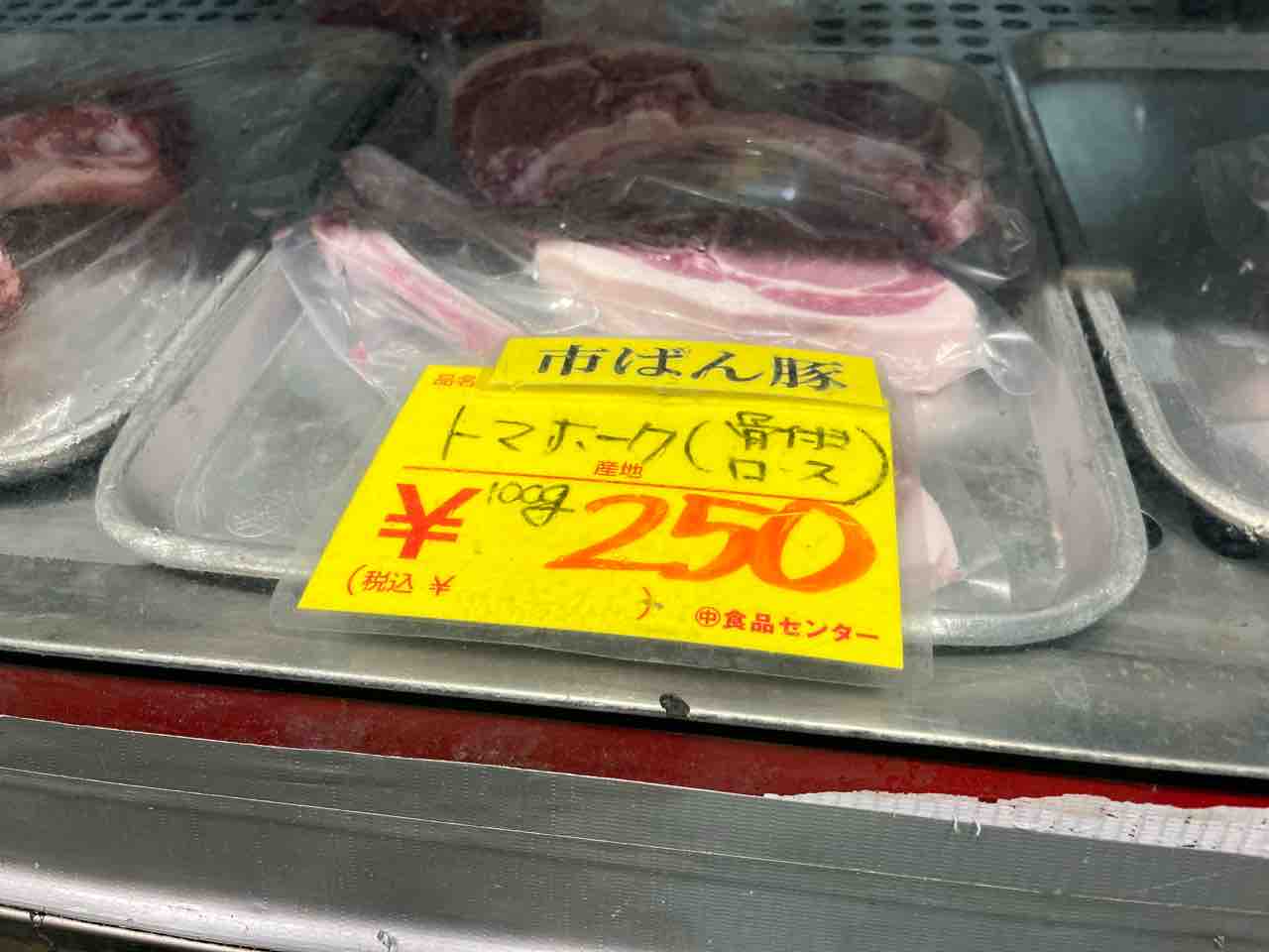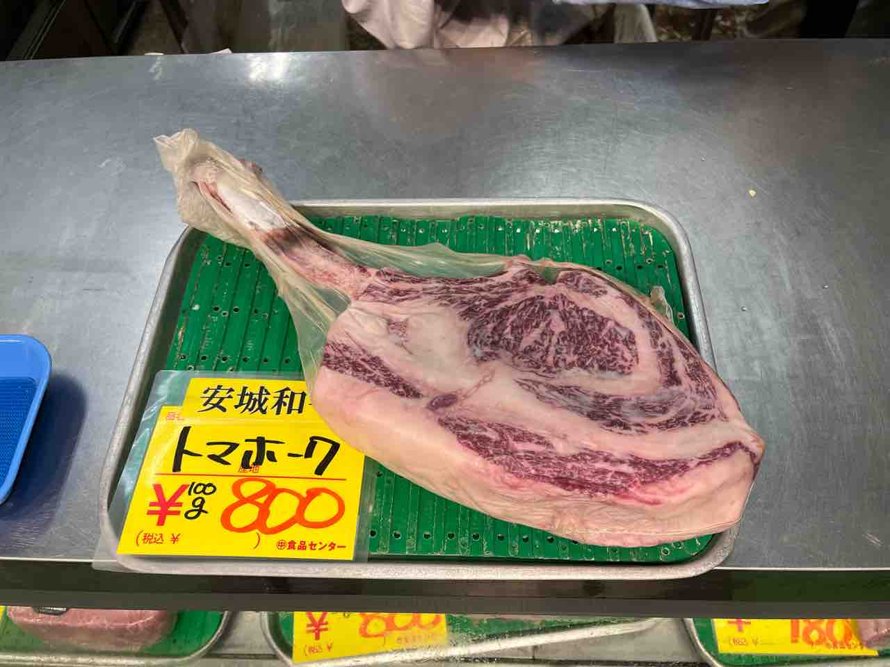 いつものお肉屋さんでは、トマホーク(牛肉)を見せていただき、しばし談笑。