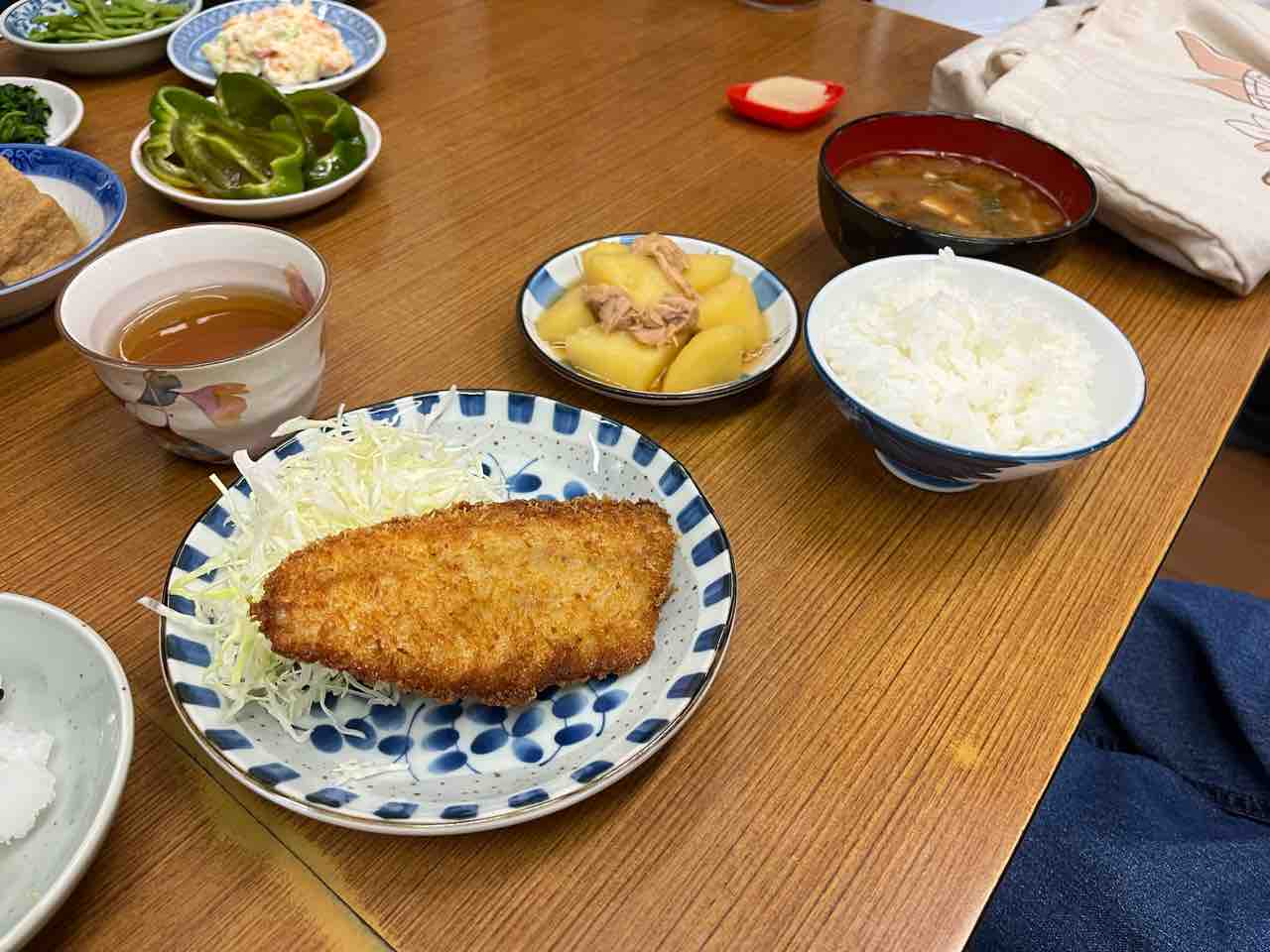 大姉ちゃんのお気に入りのジャガイモとシーチキンの煮物に揚げたてのアジフライ。