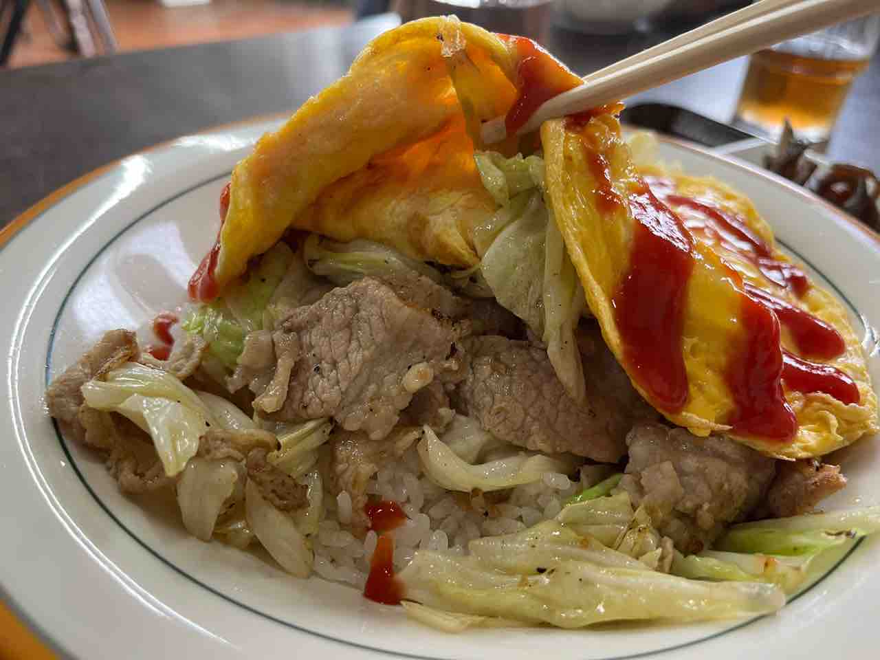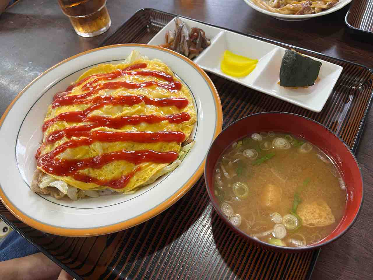 おそらくオムテンの由来は中華屋さん発祥と考えれば、オムレツ天津飯の略ってのが正解な気がします。市場だと牛丼の頭とか、一番上を天ってな言葉を使うので、市場好きにはオム(オムライス)がテン(頭or一番上)に載っているってな語源だと思っちゃっただけなんですが…。