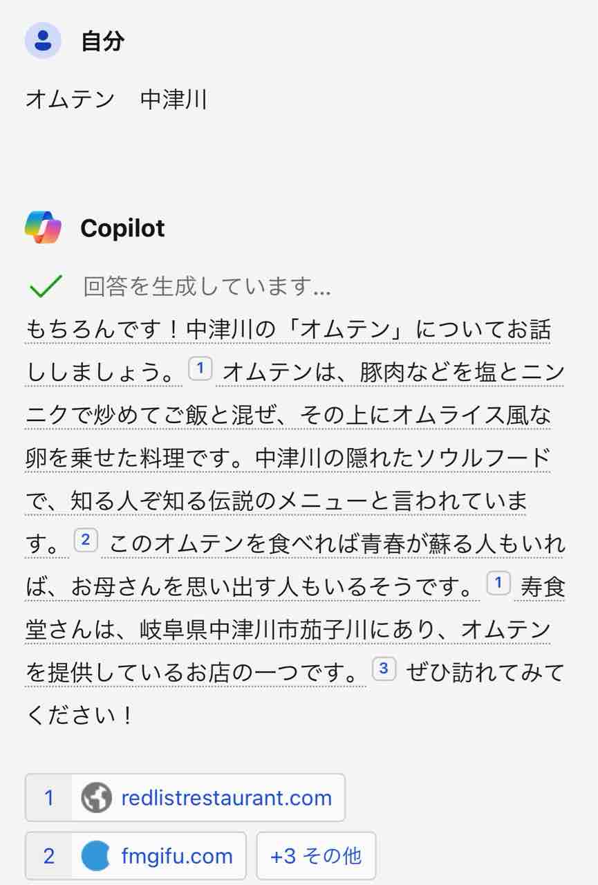 こちらの記事を書くときにもcopilotで検索して、オムテンとはなんぞや!?っと確認してからしたためております。