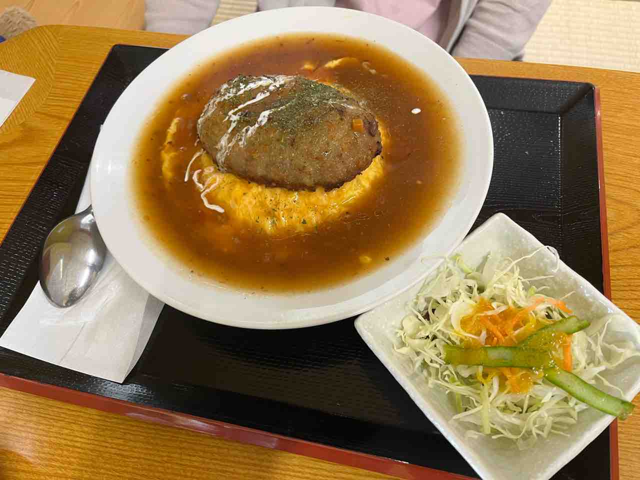 奥様は”これぞオガッシ!”を体現したハンバーグオムライス。