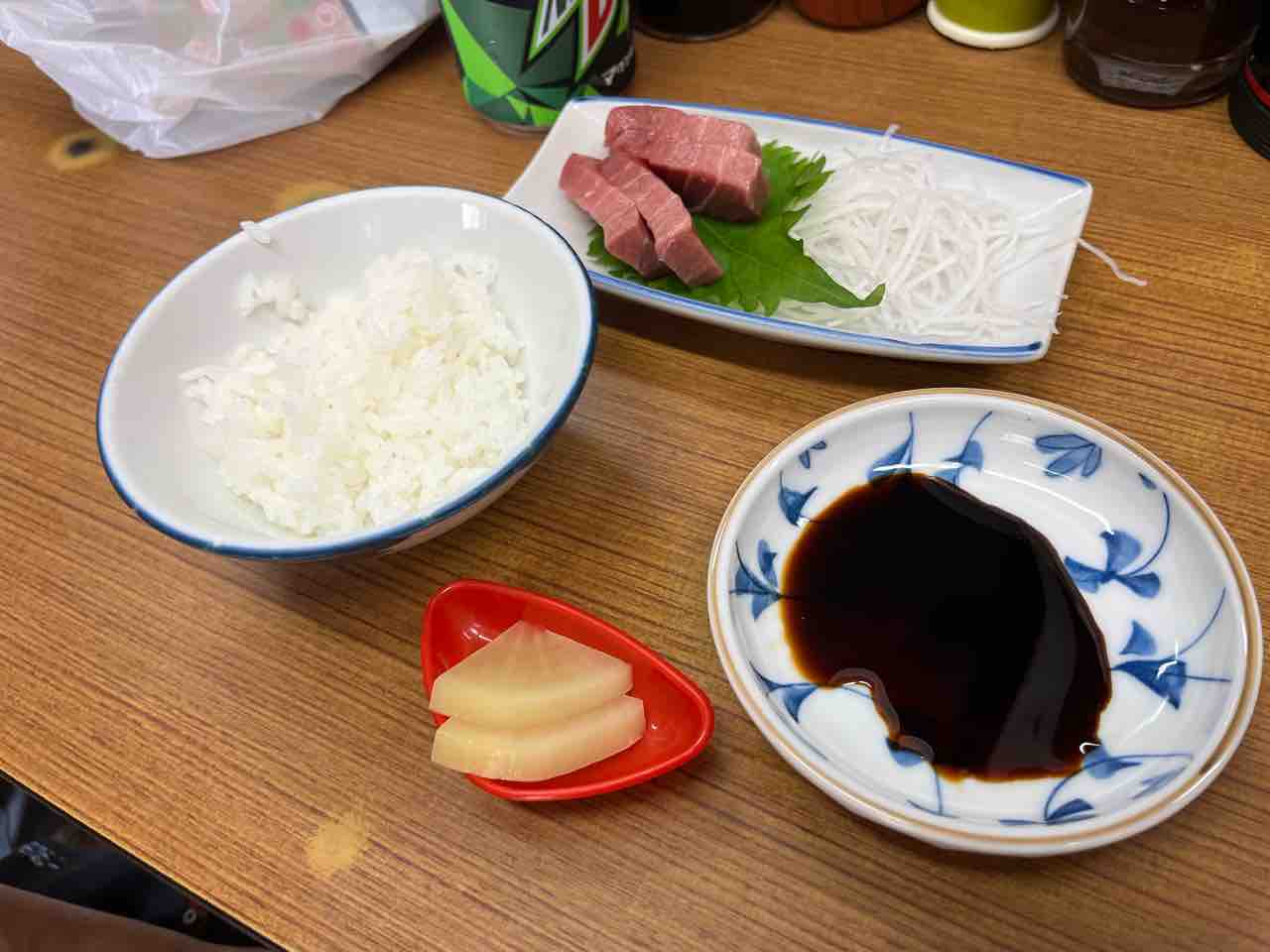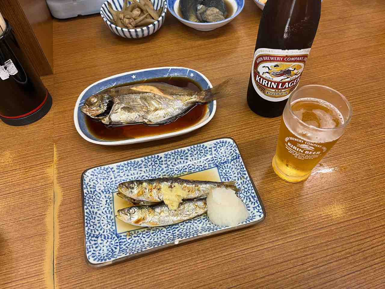 魚原さんはご飯の量、汁物の有無を伝え、カウンターに並ぶお惣菜を選ぶorおすすめ(刺身や冷凍庫に入っているもの)を伺い自分なりの定食を作るスタイル。