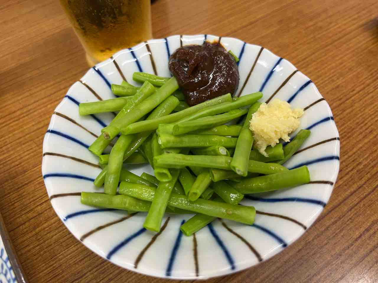 茹で加減が上々で食感は楽しいし、独自のコクがある八丁味噌におろしショウガを和えると、めちゃくちゃうまいんですよ!