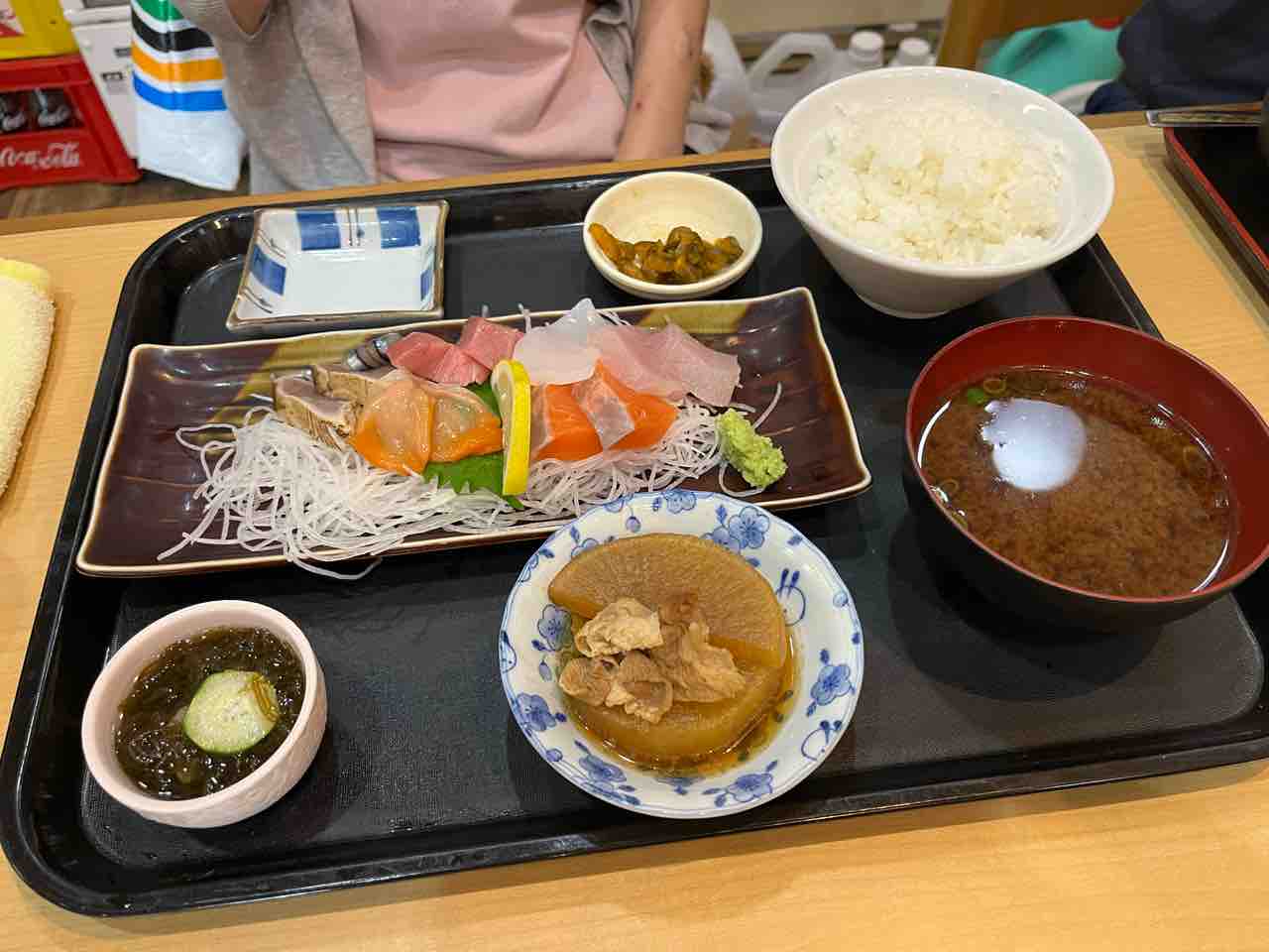 刺身定食、真アジフライと唐揚げ定食@いちます202307