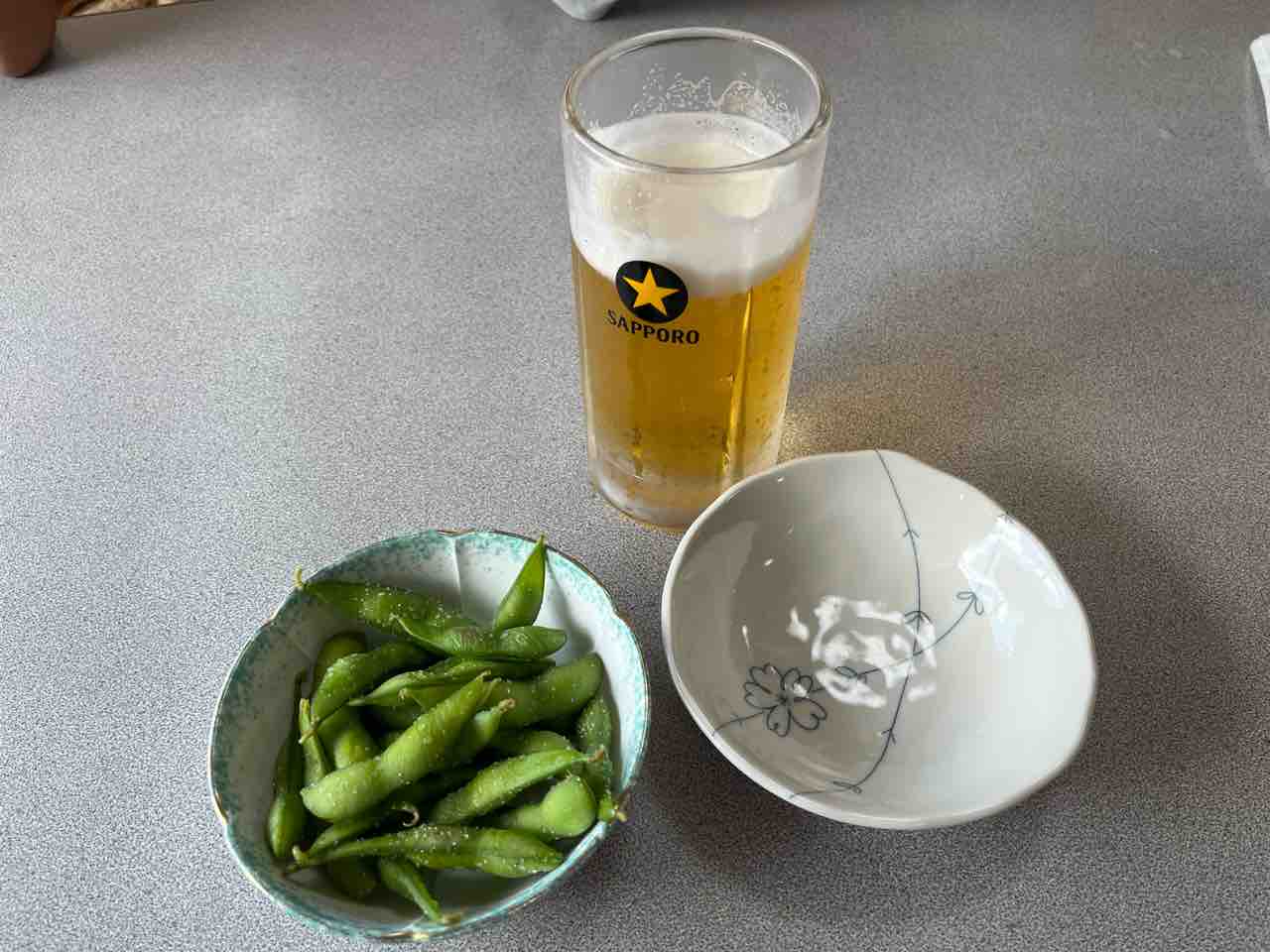 とりあえず季節物の生ビールと年中提供している枝豆で乾杯。