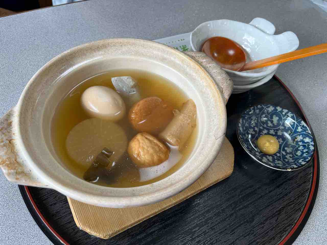 おでん、ヒレカツ、味噌カツ、カレーうどん@葉栗屋202403