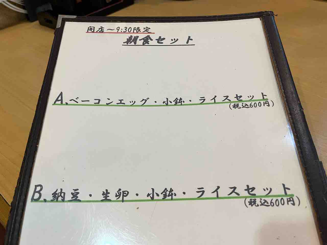 朝8時前ってところですが、メニューは一通り揃ってますね。