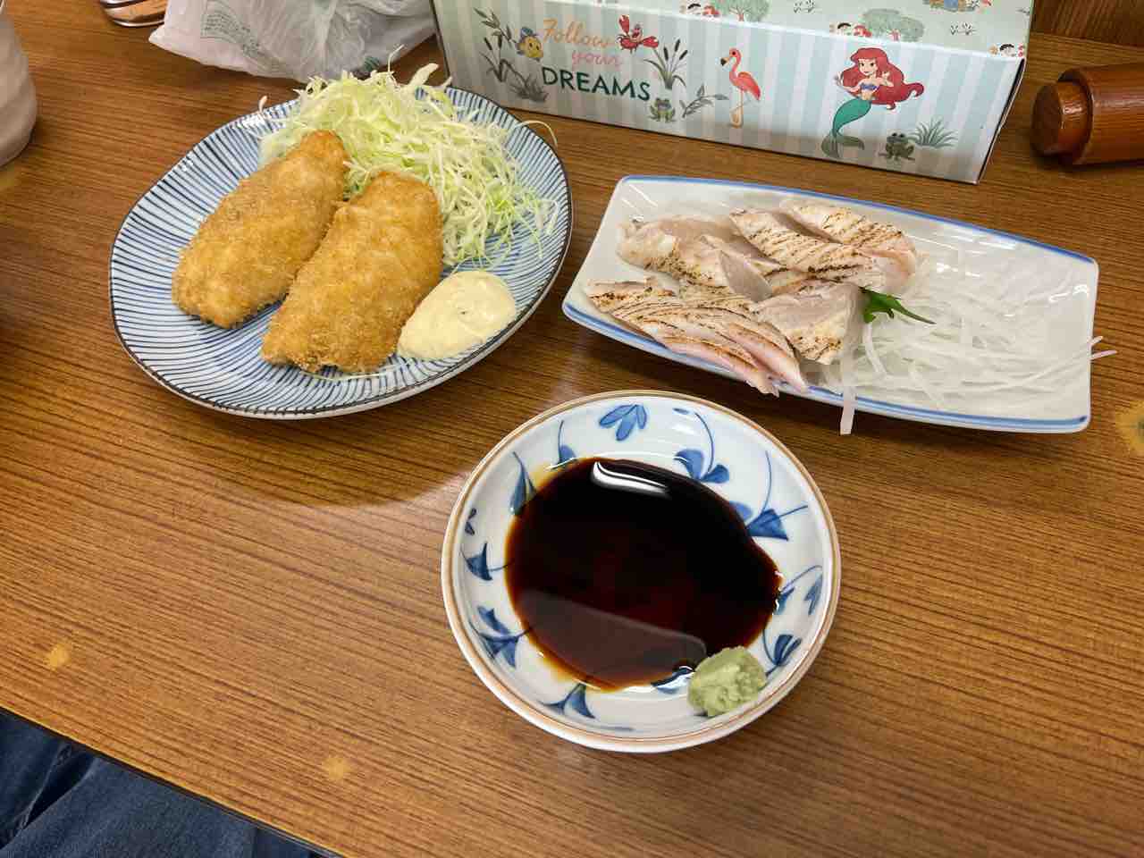 市場で鰆のたたき、シズのフライ、鰯の塩焼き@魚源食堂(柳橋中央市場、愛知県名古屋市中村区名駅)