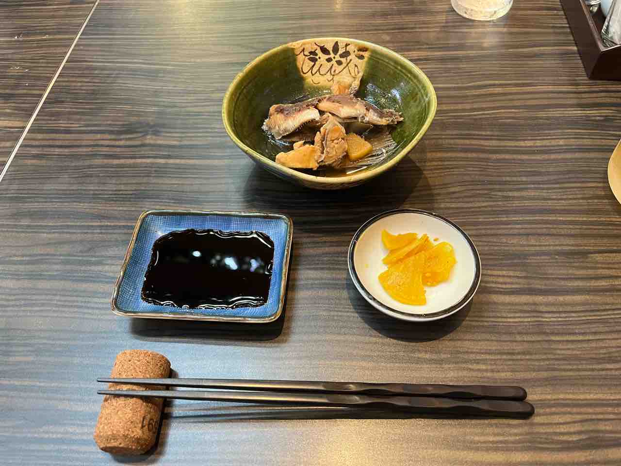 お刺身ランチの煮魚と漬物で始めます。