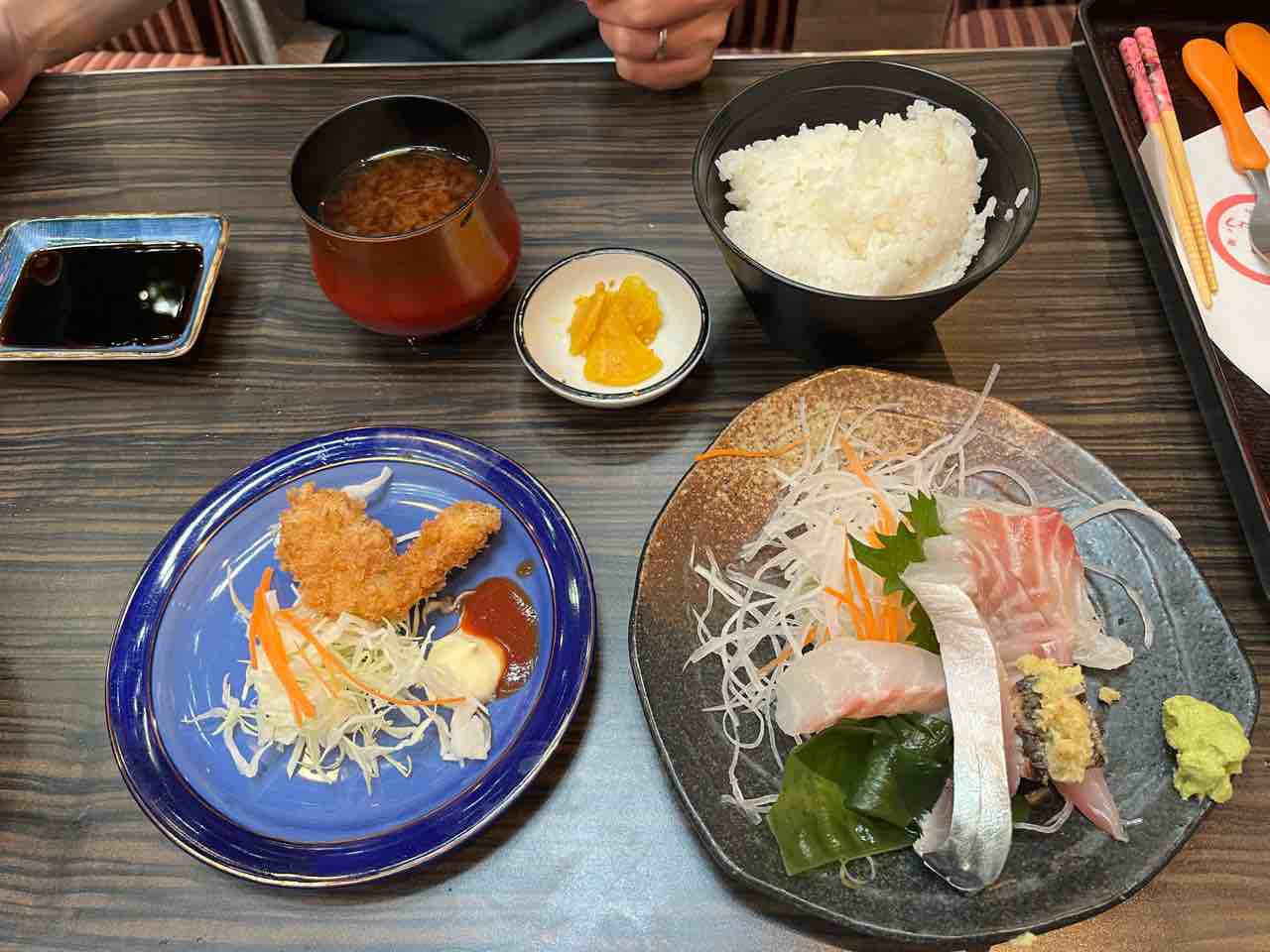 ちなみにお刺身ランチといつのはお刺身、煮魚、揚げ物、赤だしにご飯に漬物が付いたお値打ちなもの。