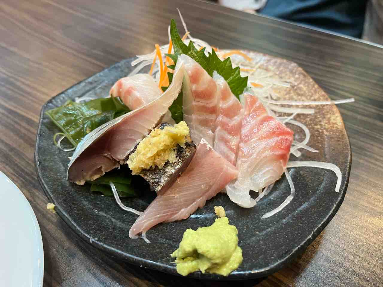 しめ鯖うまいなぁ。鰹がうまいなぁ。ハマチもうまいなぁ。鯛もうまいなぁ~っで終わってしまいますが、こちらのツマがまたうまくてですね。そこらのサラダよりうまいんですよ!