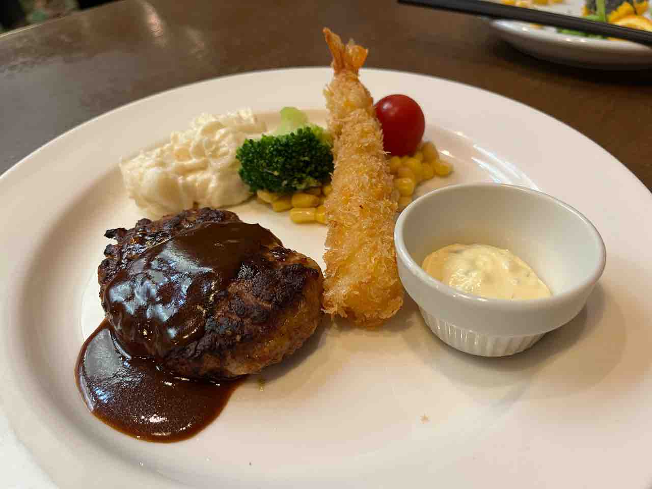 あさくまハンバーグ。ちなみにポテトはサラダバーにありません。