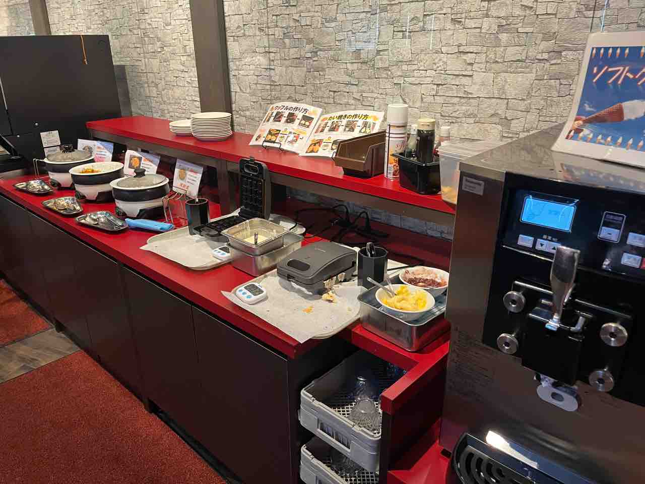 ソフトクリームやワッフルやらたい焼きやら自分で作れたりするので、子どもたちは大喜びです。