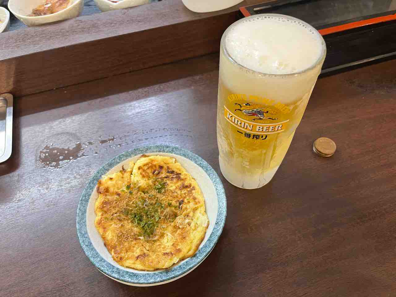 とりあえずビールと「とうふお好み焼き」。