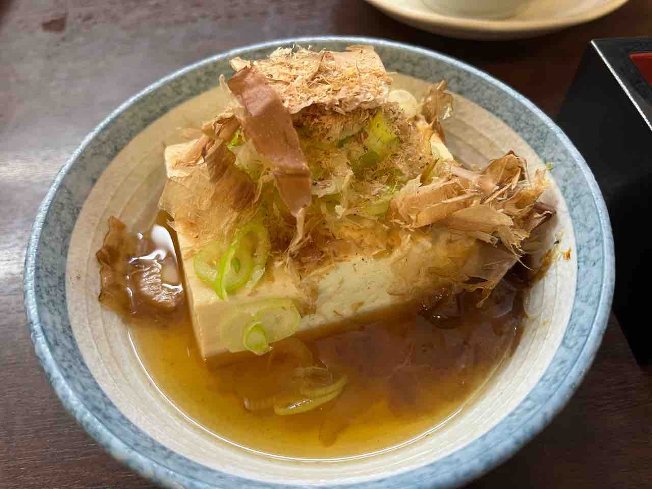 刻みねぎに花かつおがどっさり乗って提供されます。