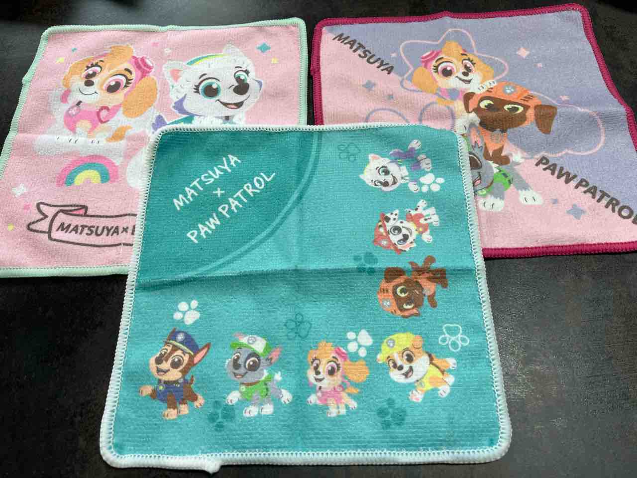ちなみにパウっとハンドタオルは全6種類。被らない配慮があるらしく、2人前頼むと2種類のハンドタオルが出てくる。6人前頼めばコンプリートできるのだが…、3人娘で大姉ちゃんはお子様を頼む年ではない我が家では難しい。