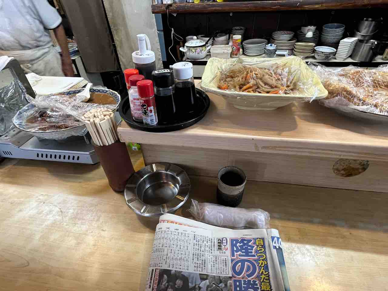 大相撲開催中はスポーツ新聞を探して街を彷徨うアタクシですが、こちら道風さんはカキフライにスポーツ新聞がある稀有なお店。